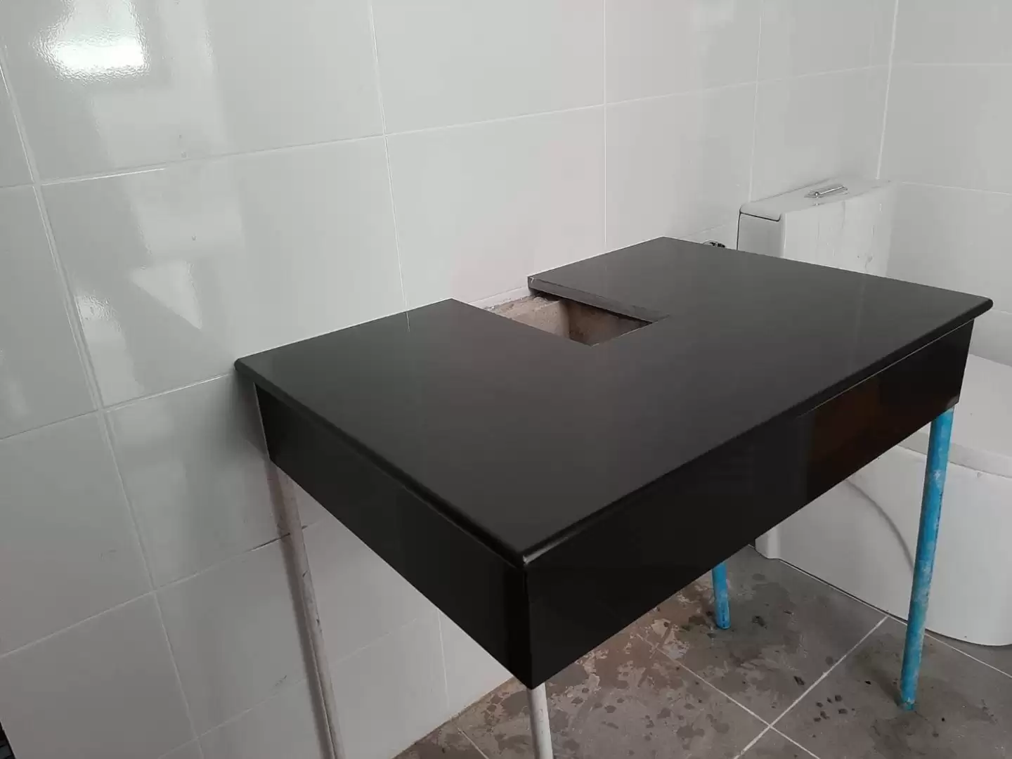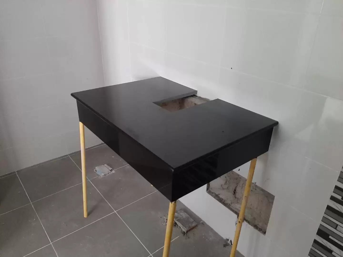 รับติดตั้งท็อปเคาน์เตอร์ห้องน้ำ หินแกรนิตดำ เดอะแกรนด์ พานทอง